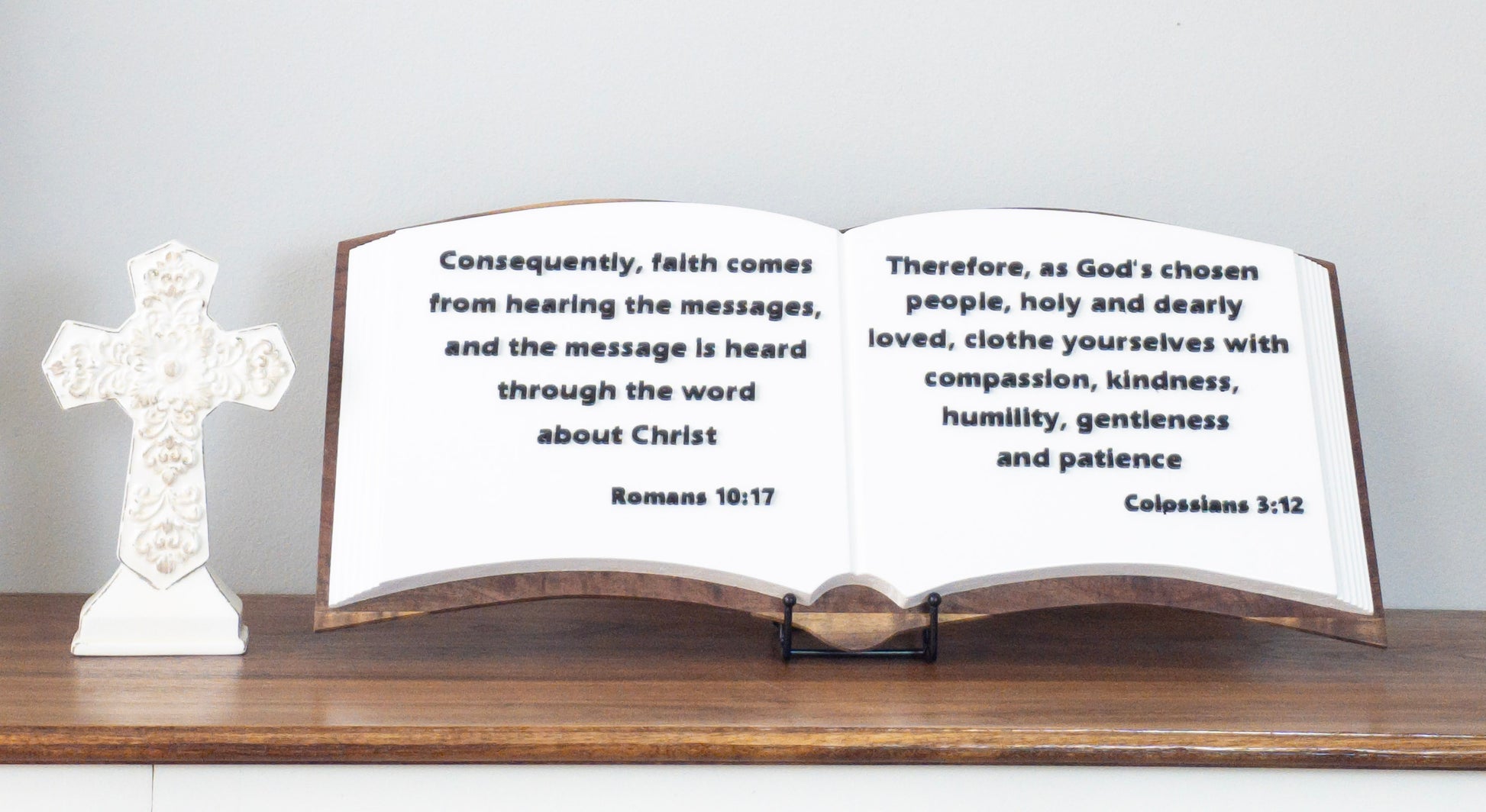 Celebrate your faith with this handcrafted Wooden Bible Book, a unique piece of Christian wall décor designed to resemble an open Bible. Each piece is made to order, ensuring it’s crafted with care and customized just for you.